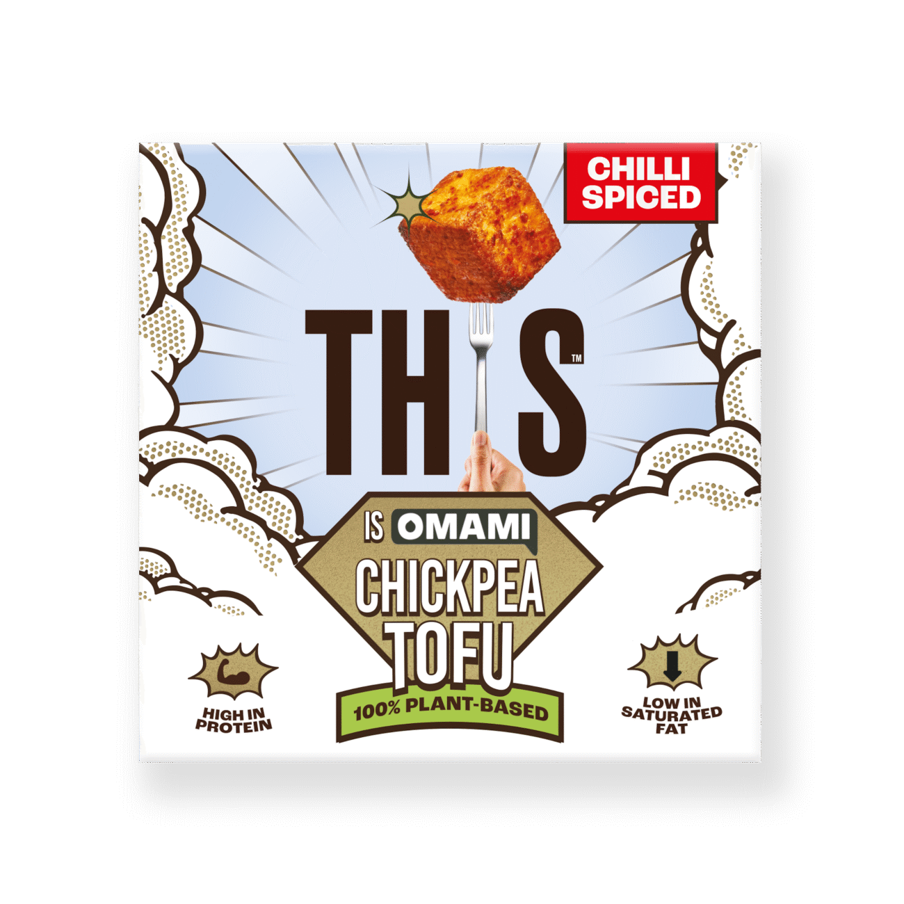 Das britische Start-up THIS™ bringt omami Kichererbsen-Tofu in köööstlicher Marinade in Supermärkte auf der ganzen Insel.