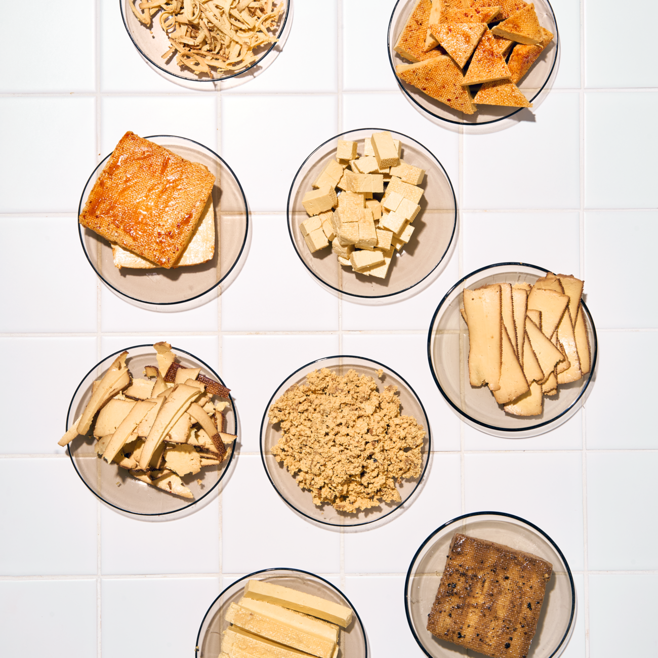 China bietet die größte Sortenvielfalt: Stinky-Sojatofu (Chou Doufu) wird mehrere Wochen fermentiert und entwickelt einen intensiven Geruch bei mildem Geschmack. Gefrorener Sojatofu (Dong Tofu) entsteht durch mehrmaliges Einfrieren und Auftauen. Geräucherter Sojatofu erhält durch Buchenholzrauch seine charakteristische braune Farbe.